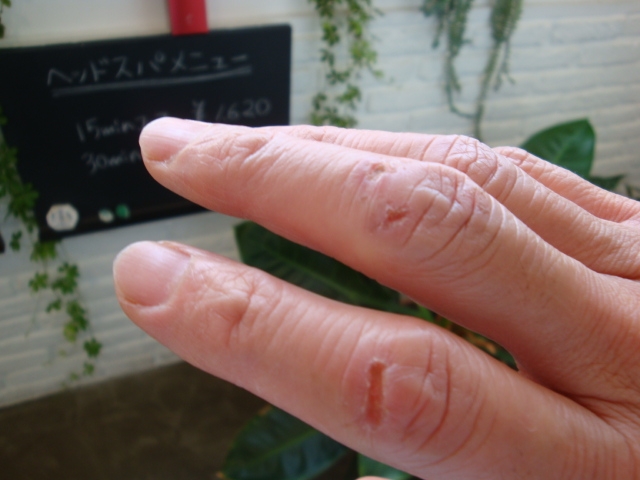 いきなり海から上がるときこけて穴のあいた?指。